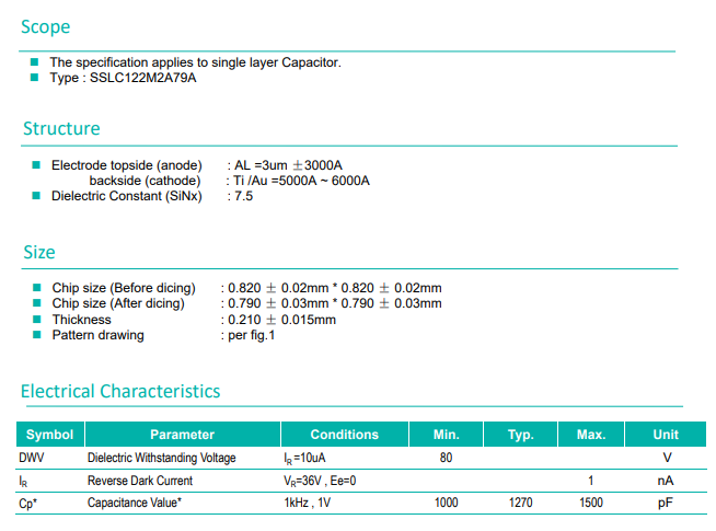 烨映微电子硅电容SSLC103M1A79A