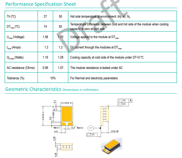 烨映微电子TEC半导体制冷器STEFC1-01809P-TTAu-T280-AIN